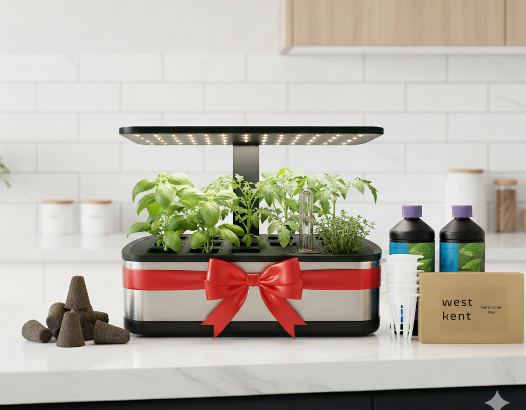 Designed for simplicity and ease, the West Kent 12 pod Smart Garden is a modern hydroponic garden without the complications of apps or Wi-Fi. Just switch on and grow. With its intuitive controls and durable body, this system is perfect for beginners and those who prefer a hands-on approach.